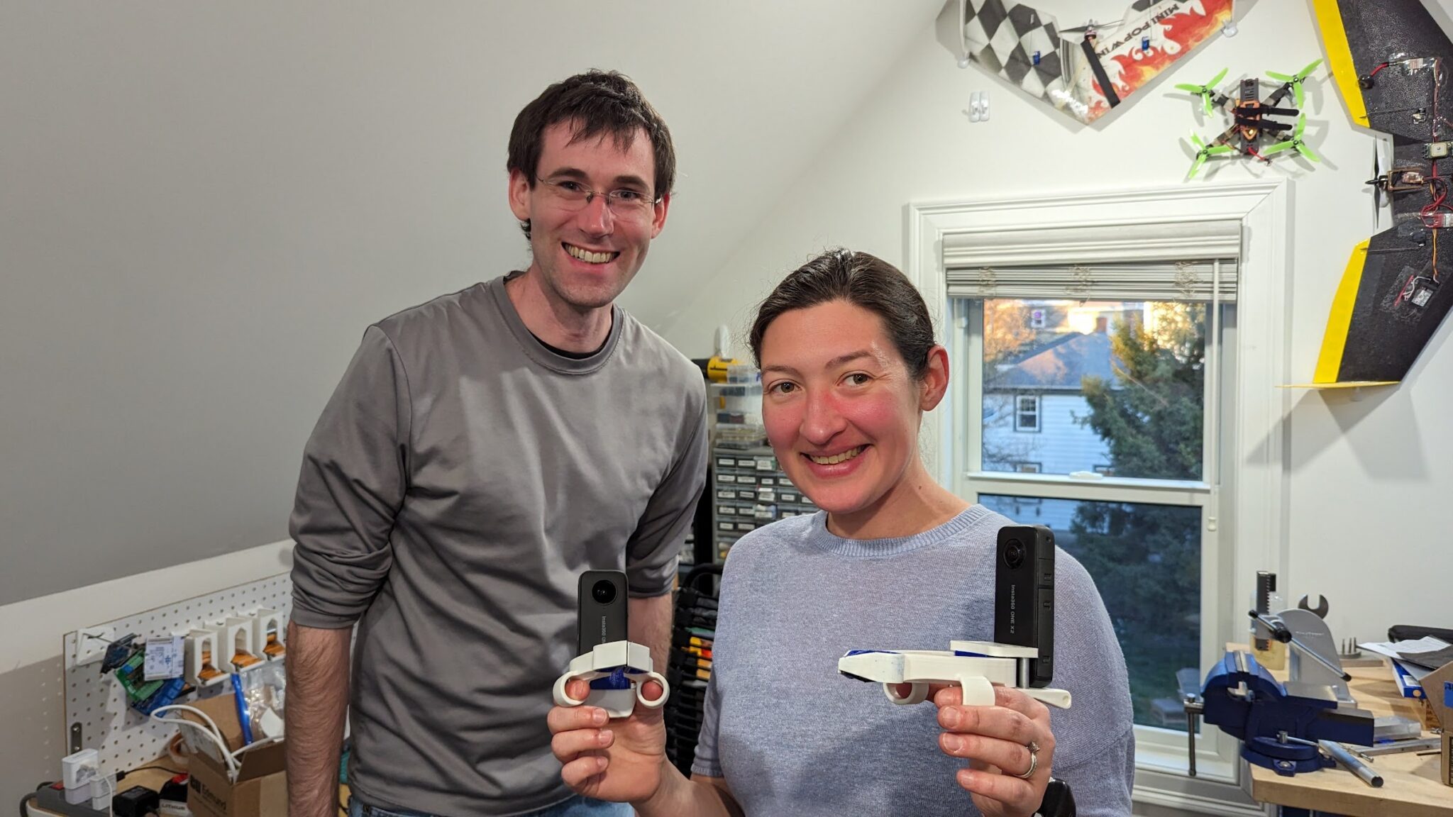 Andy Barry and Ellen Chisa with an early prototype of Generalist “data hands.”